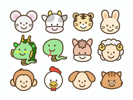 12지는 12가지 동물을 뜻하는 한자어로, 자(子)는 쥐, 축(丑)은 소, 인(寅)은 호랑이, 묘(卯)는 토끼, 진(辰)은 용, 사(巳)는 뱀, 오(午)는 말, 미(未)는 양, 신(申)은 원숭이, 유(酉)는 닭, 술(戌)은 개, 해(亥)는 돼지를 의미합니다.