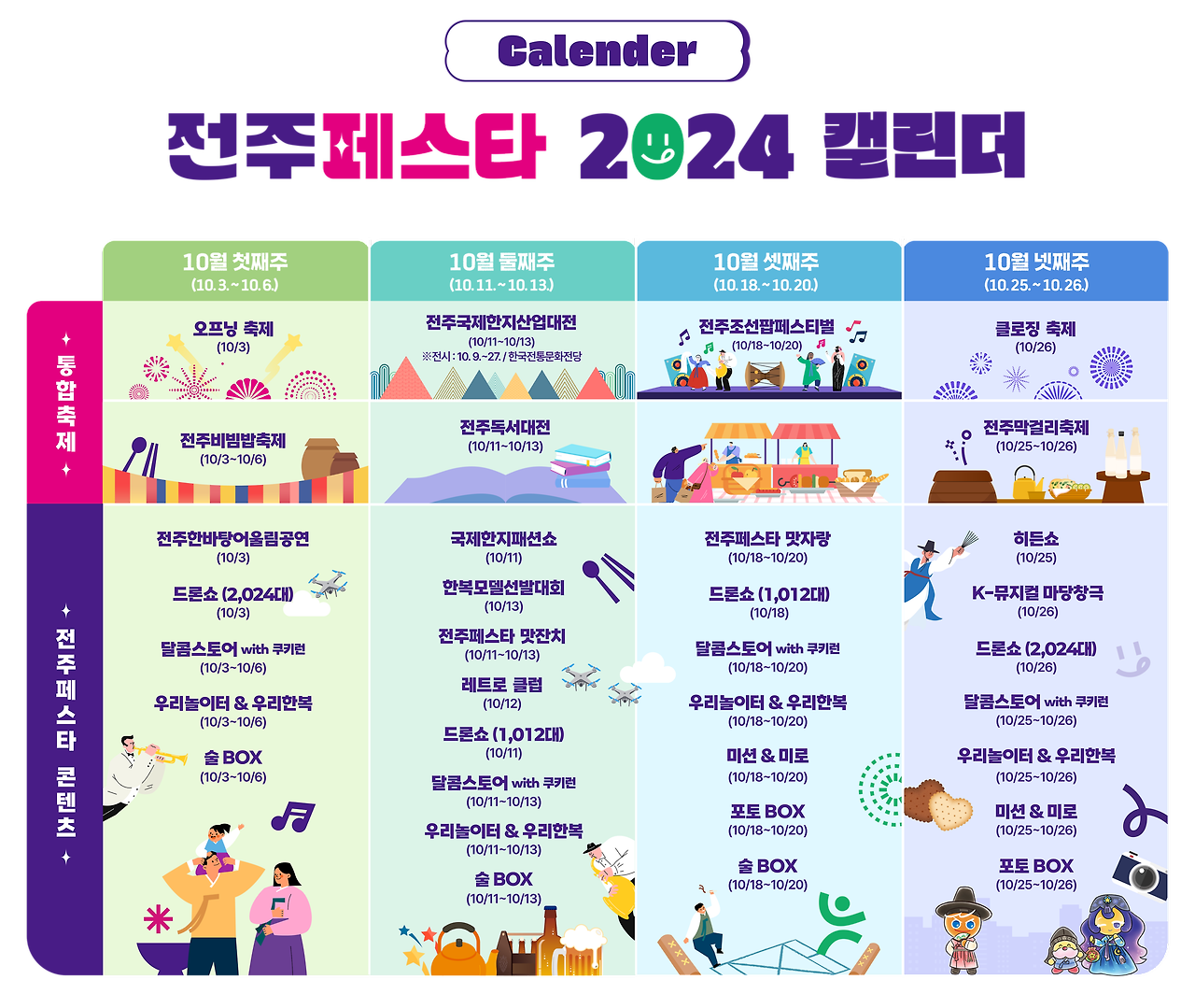 - 3주차 (10월 18일 ~ 20일): 전주조선팝페스티벌